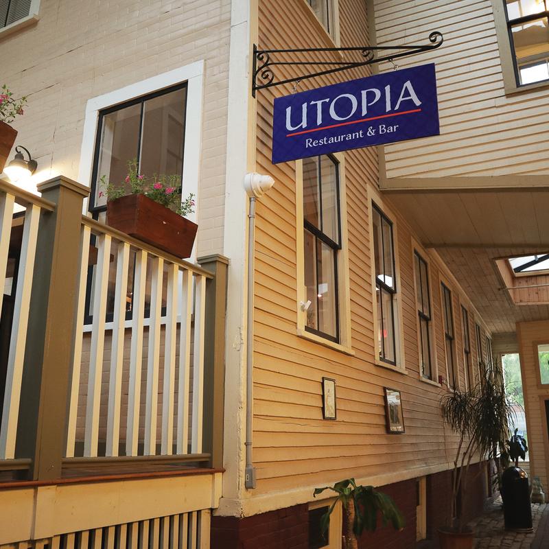 We are located in downtown Bangor, ME at 96 Hammond street. Whether you dine in or take out we use fresh and locally sourced ingredients. We source local grass-fed pasture raised beef, farm to table organic vegetables, and cater to our allergy restricted guests with the majority of our menu being gluten free or gluten free available! Utopia serves a variety of cuisines, from Ribeye, Seafood, Fresh Pasta, to Moussaka, Cauliflower Steak! Utopia has options for meat eaters and vegans. We have a full bar (dine in or takeout) including craft cocktails, specialty wine, and local craft beer. Your server will be happy to assist you with a beverage pairing!